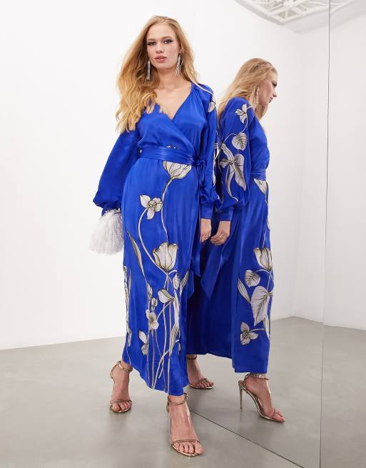 ASOS DESIGN Jurk van mesh met overslag en bloemenprint in blauw Very well made.