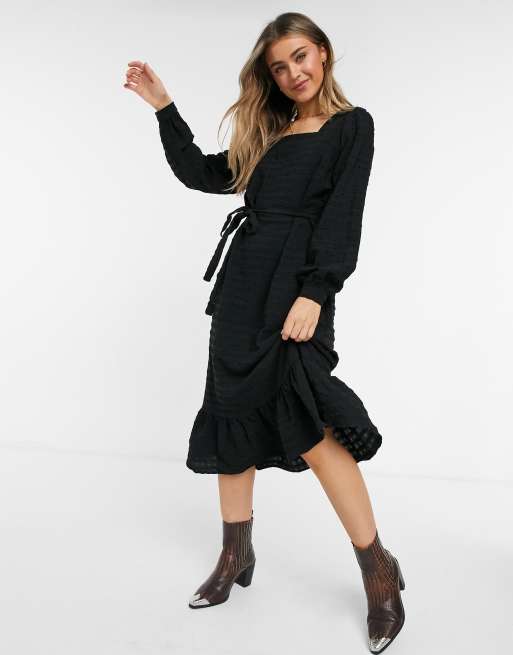 Pieces Midi jurk met textuur vierkante hals en gestrikte taille Very well made.