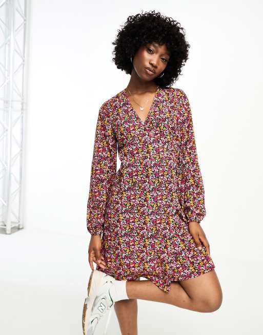 Pieces Mini jurk met overslag en fijne print in multi Very well made.