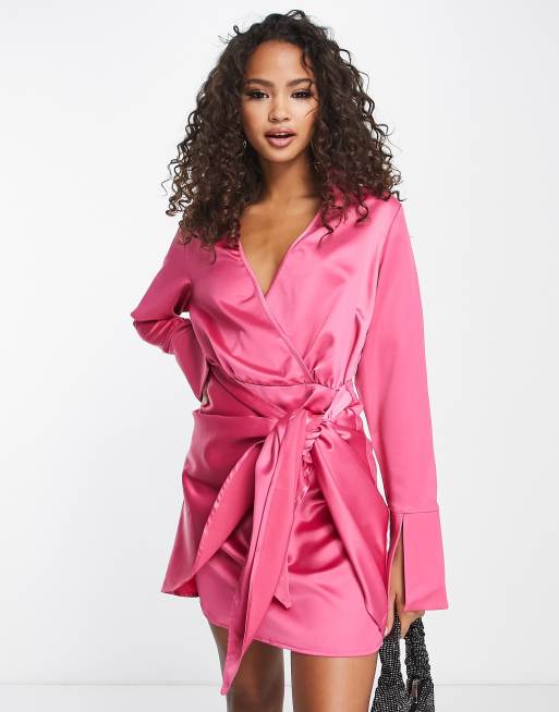 In The Style Overhemdjurk van satijn met overslag in roze Very well made.