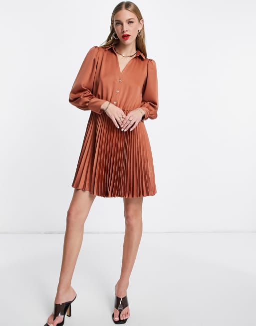 Closet London Mini overhemdjurk met plooien in roestbruin ASOS Very well made.