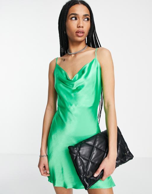 Bershka Satijnen mini jurk met gedrapeerde halslijn in groen Very well made.