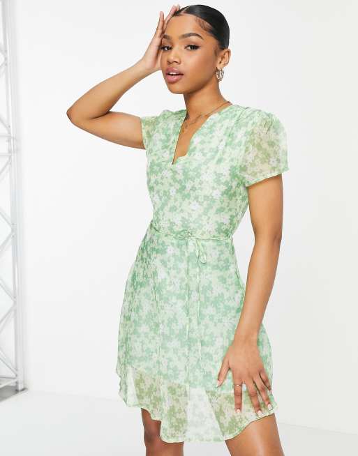 Glamorous Mini cocktailjurk met overslag korte mouwen en fijne bloemenprint in appelgroen Very well made.
