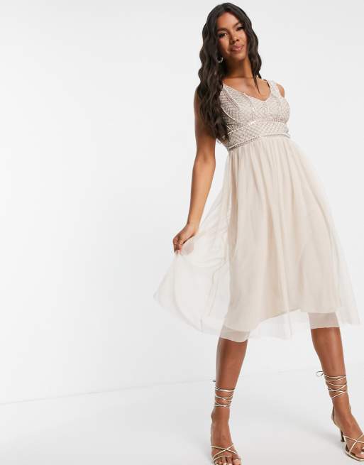 Lace Beads Midi jurk met lovertjes in beige Very well made.