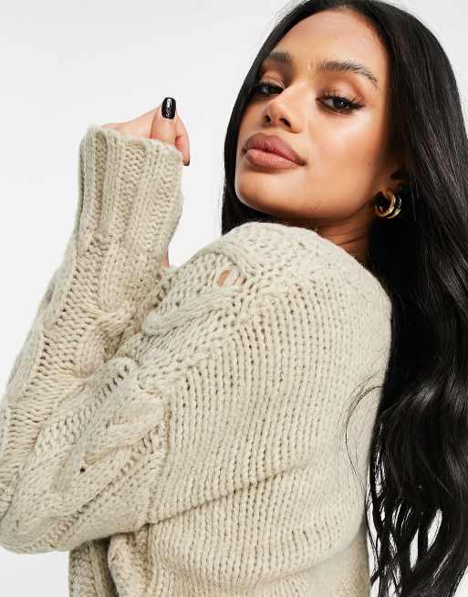 NA KD Grofgebreide trui met V hals in lichtbeige Very well made.