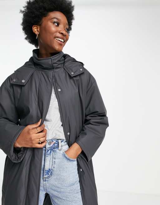ASOS DESIGN Gewatteerde regenjas met rubberen coating in antraciet STONE Very well made.