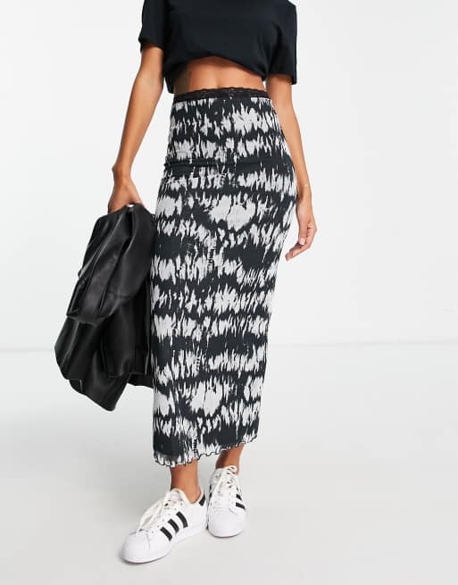 Topshop mesh animal blur print midi skirt in monochrome Very well made.