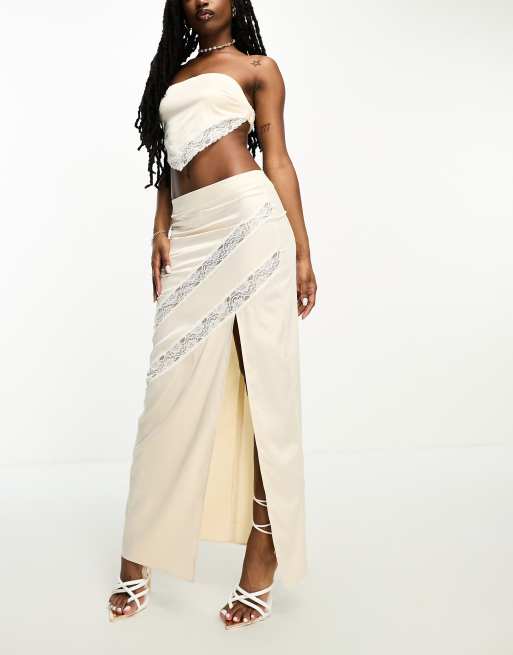 ASYOU Lange kokerrok met split in champagnekleur met Very well made.
