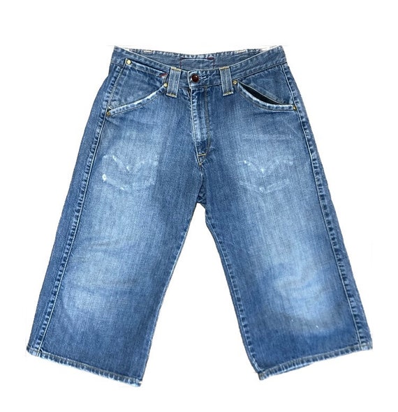 Vintage Levis Capris Jeans Excellent Condition 13 Waist 15.5 In leg Unique Red Button Back Pocket Design Y2K Unisex Etsy New Zealand Very well made.