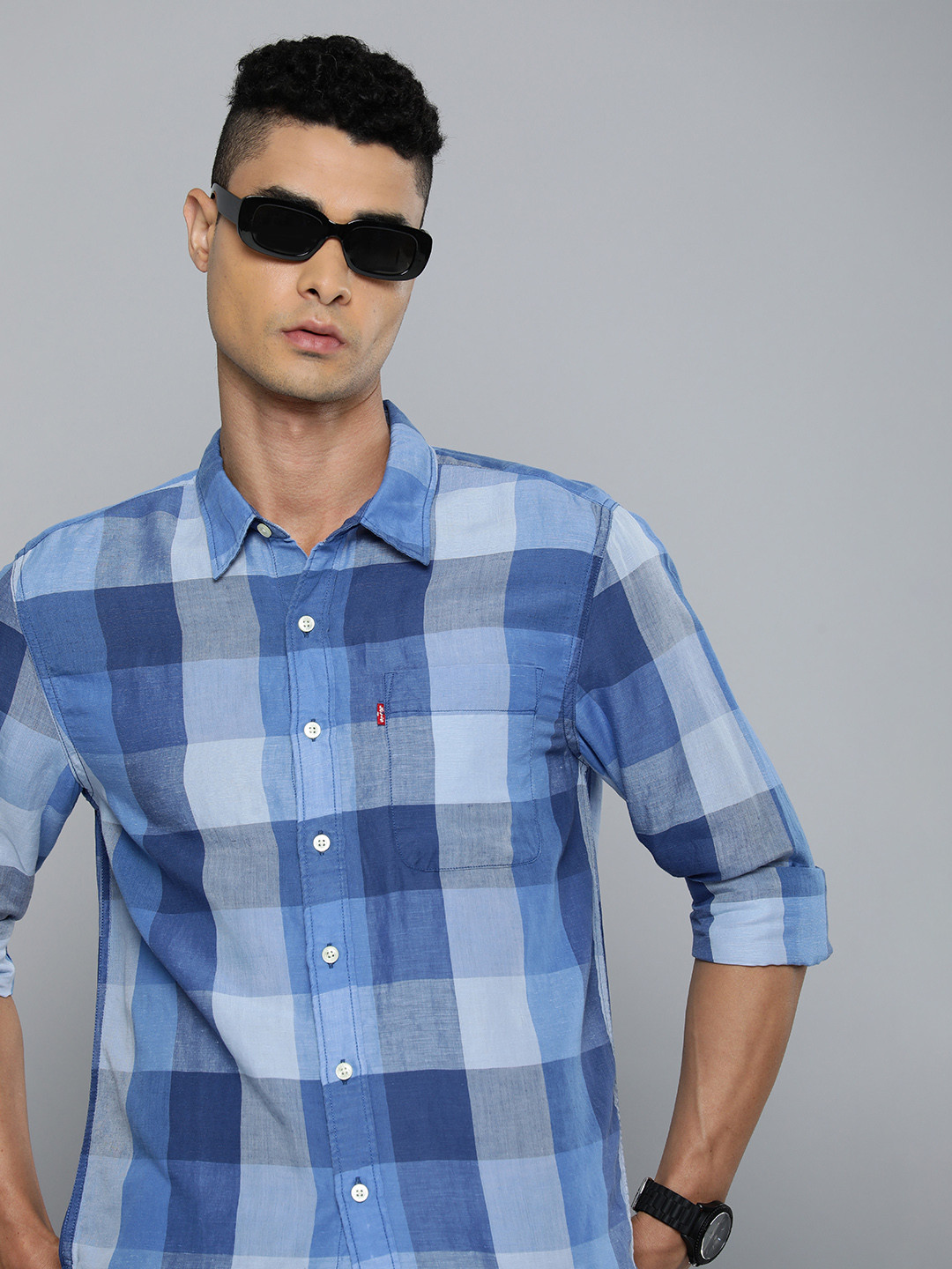 Men s Checkered Slim Fit Linen Shirt Levis India Store Very well made.