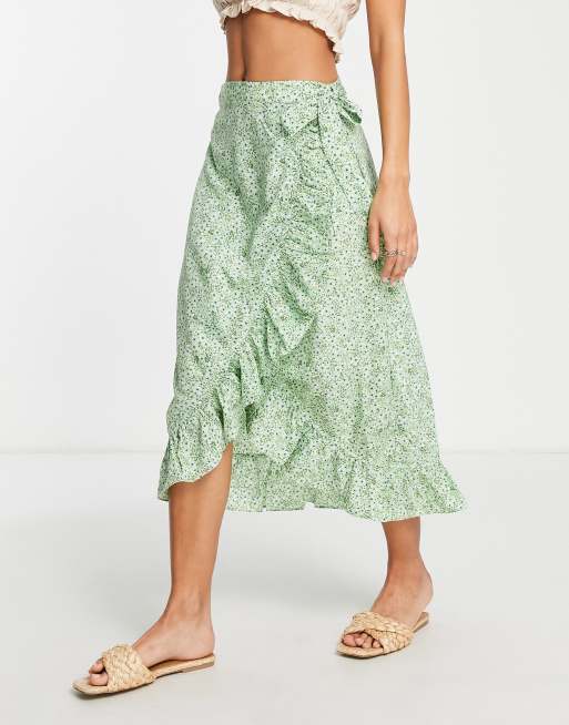 Vero Moda Midi rok met ruches en groene bloemenprint ASOS Very well made.