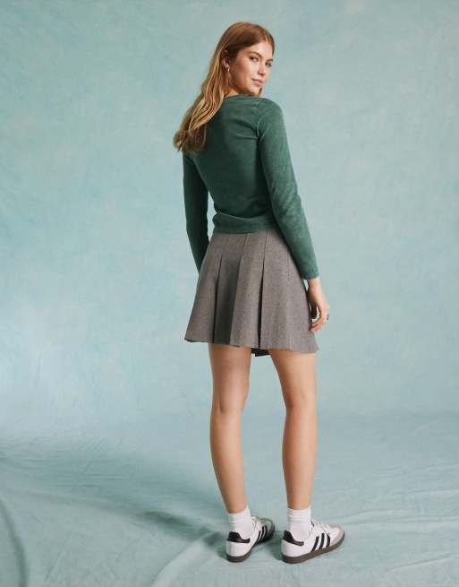 Miss Selfridge Plooirok met overslag en gesp in grijs Very well made.