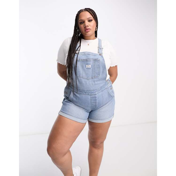 Levi s Plus short dungarees in mid wash blue ASOS Very well made.