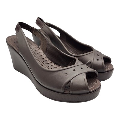 crocs farrah slingback wedge heels peep toe sandals black womens size 10 364183780064 Very well made.