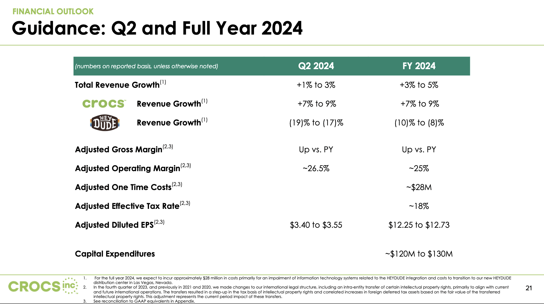 Crocs Inc. Reports First Quarter Fiscal 2024 Financial Results Very well made.