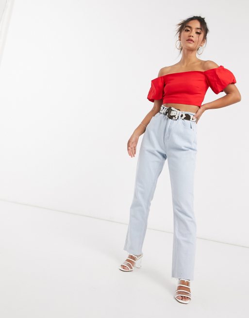 Vesper Crop top met pofmouwen in rood deel van co ord set ASOS Very well made.