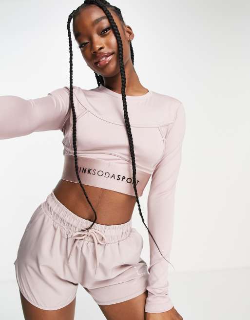 Pink Soda Sport Crop top met lange mouwen en contournaden in roze Very well made.