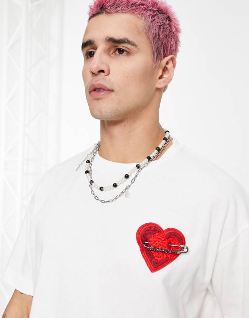 Sixth June Oversized T shirt met hart met veiligheidsspeld in wit Very well made.