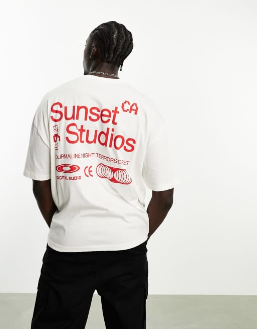 ASOS DESIGN Oversized T shirt met rode tekst op de rug in ecru Very well made.