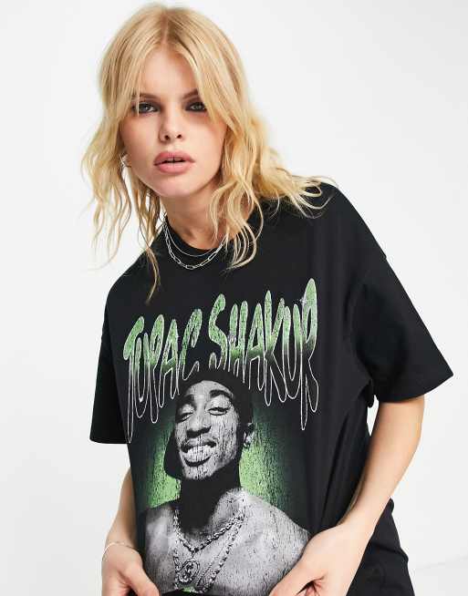 Bershka Tupac slogan oversized tee in acid wash grey Very well made.