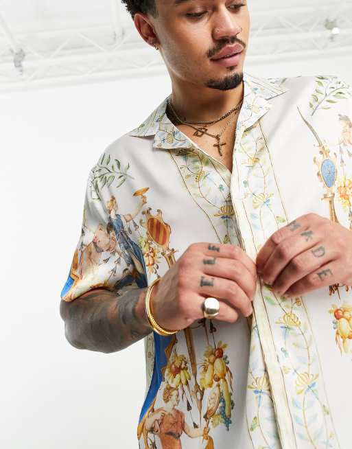 Luxe Satijn Heren Overhemd met Kleurrijke Print 3095 Very well made.