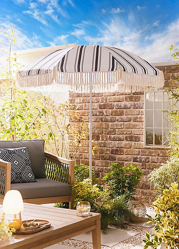1.8m Striped Fringed Parasol with Carry Bag by Streetwize Look Again Very well made.