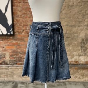 BURBERRY WRAP DOUBLE BELT PLEATED DENIM SKIRT S M Very well made.