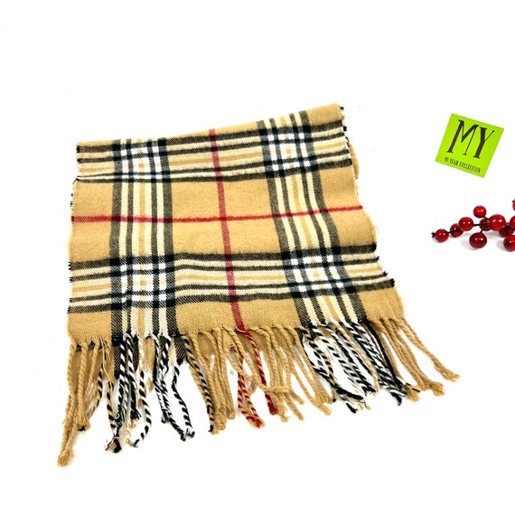 AUTH Burberry Wool Scarf Shawl Nova Check Plaid Tan Beige Accessories Very well made.