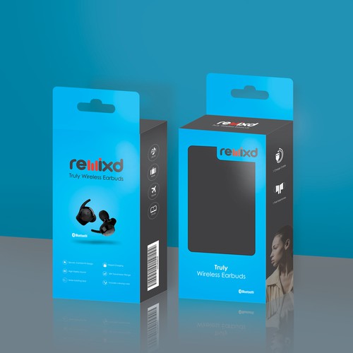 Design an eyecatching package for remixd truly wireless earbuds Very well made.