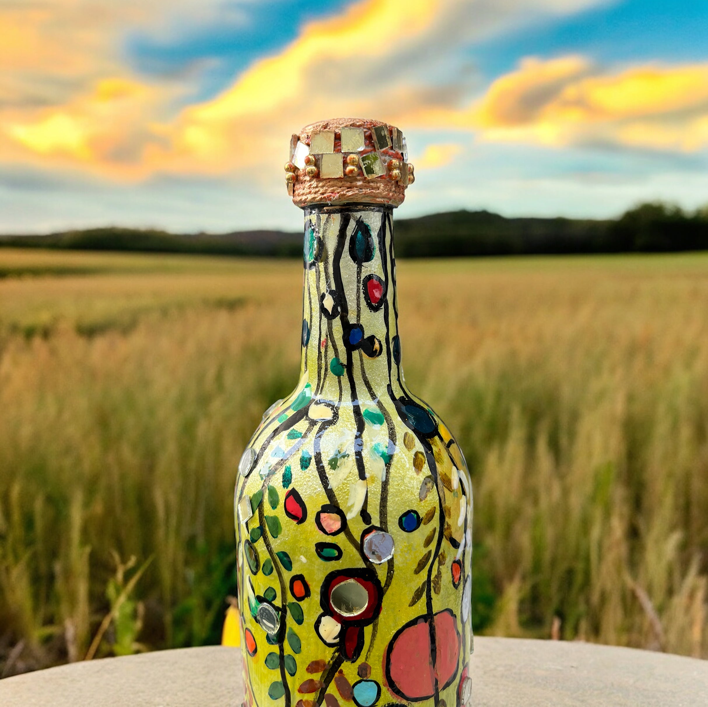 Hand Painted Glass Bottle Abstract Leaves Art by Arsh Very well made.