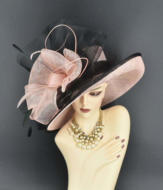 M22020 Black Pale Pink Hatkentucky Derby Hat Wedding Hat Royal Ascot Hat Mother of Bride Hat Tea Party Hat Wide Brim Sinamay Hat Etsy Very well made.
