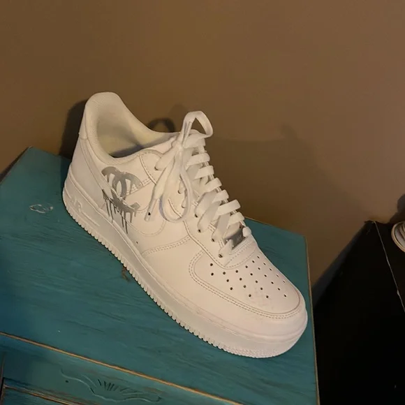 Womens size 9 Nike Air Force ones with customized metallic Chanel symbol Very well made.