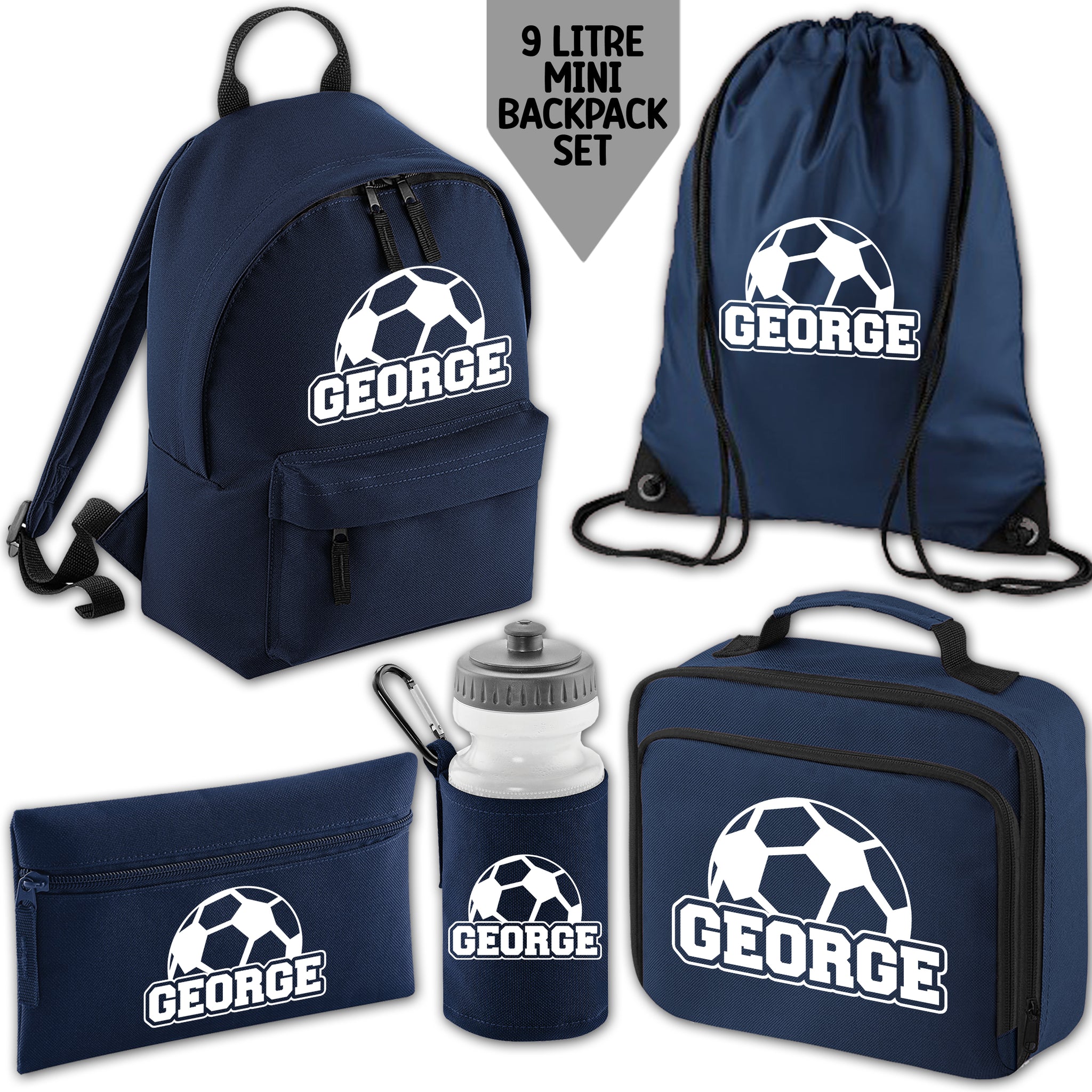 Personalised Backpack Kids School Bag Set Football Name Navy Lunch Bag Make It Personal Gift Shop Very well made.