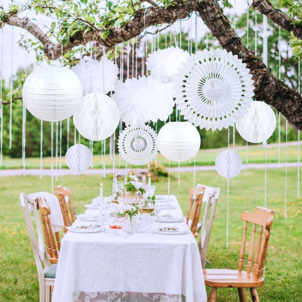 Elegant White Wedding Decoration Set Paper Lamps Plus Ceiling Fans Lanterns Honeycomb Balls Pom Flower Events Wedding Marriage Decoration 210925 From Cong09 11.89 DHgate.Com Very well made.