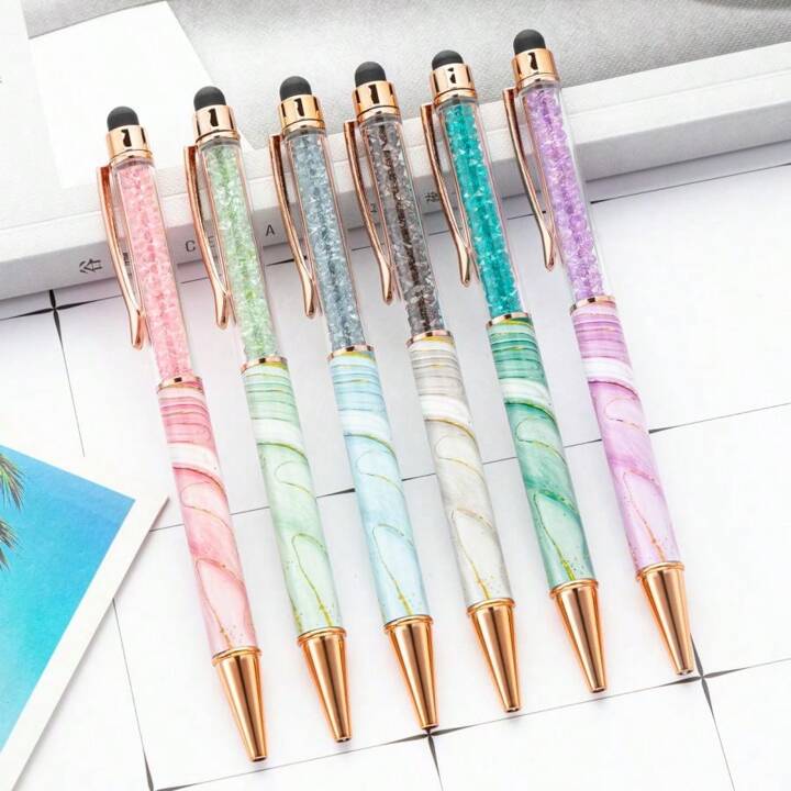 Heat Transfer Film Ballpoint Pen Creative Student Girls Rotating Touch Screen Crystal Pen Multicolor Marble Metal Pen Back To School Very well made.