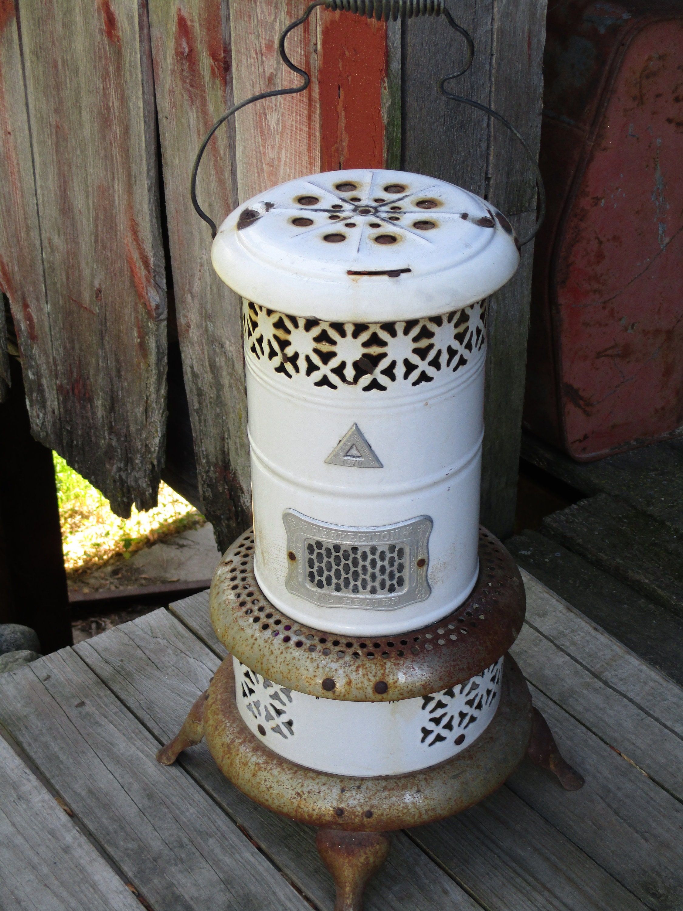 Perfection Oil Heater 1670 white Enamel Perfection Smokeless Oil Heater plant Stand oil Kerosene Heater stage Prop photo Prop rustic Decor Etsy Very well made.