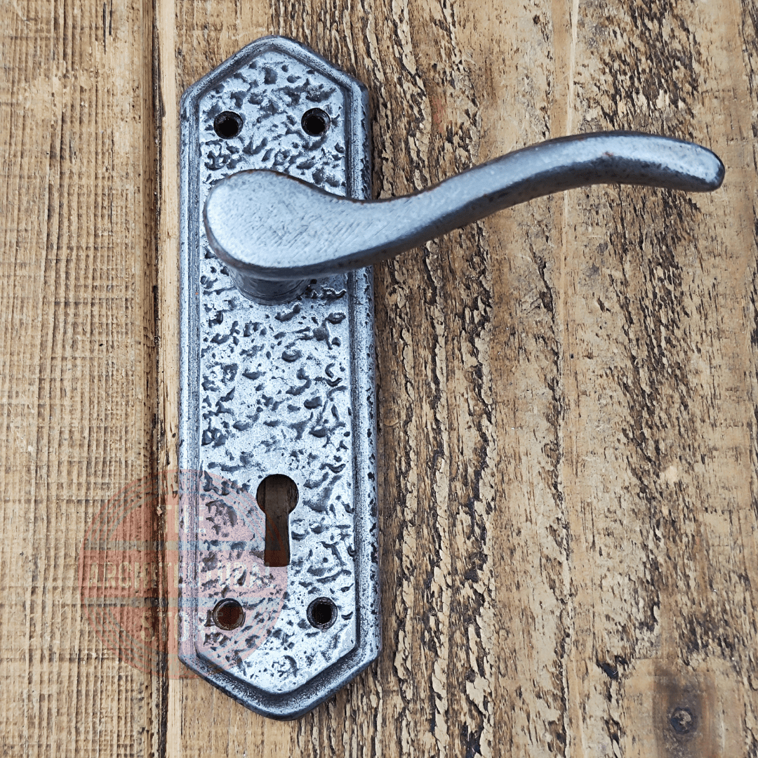 Dark Pewter Cottage Style Wrought Iron Door Handles c w Keyhole Rustproof Finish VF100 Very well made.