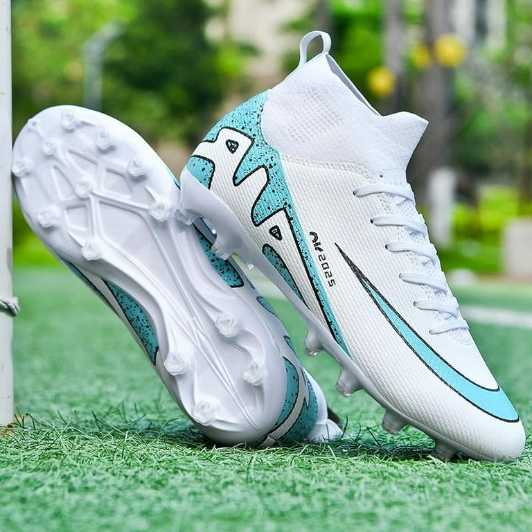 Mens Soccer Shoes High Top Soccer Cleats Kids Adults Shoes Size 5 11 White Gold Very well made.