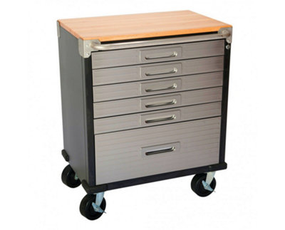 Seville Classics Ultra HD 6 Drawer Rolling Cabinet Workbench Timber Top UHD20264B Very well made.