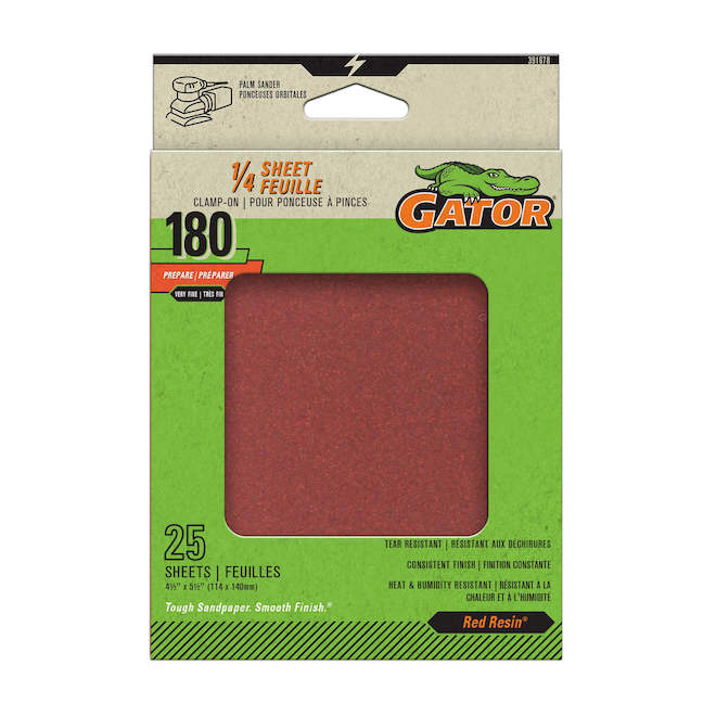 Gator 1 4 Sheet Sandpaper 180 Grit Pack of 25 391678 RONA Very well made.