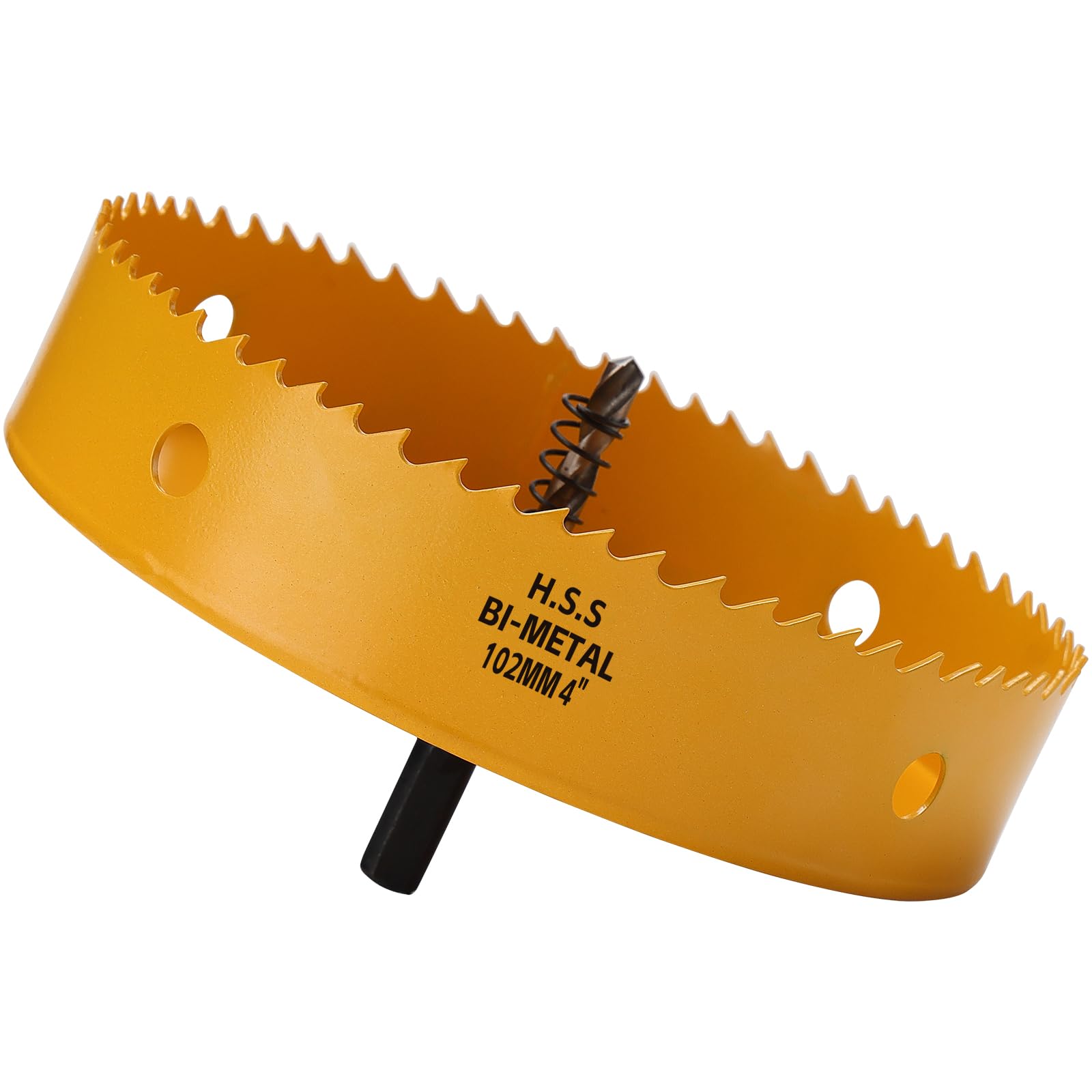 4 Inch Hole Saw 102 mm HSS Bi Metal Hole Cutter Hole Saw for Recessed Lighting Can Light Iron Board Cornhole Boards Plywood Yellow Amazon Very well made.