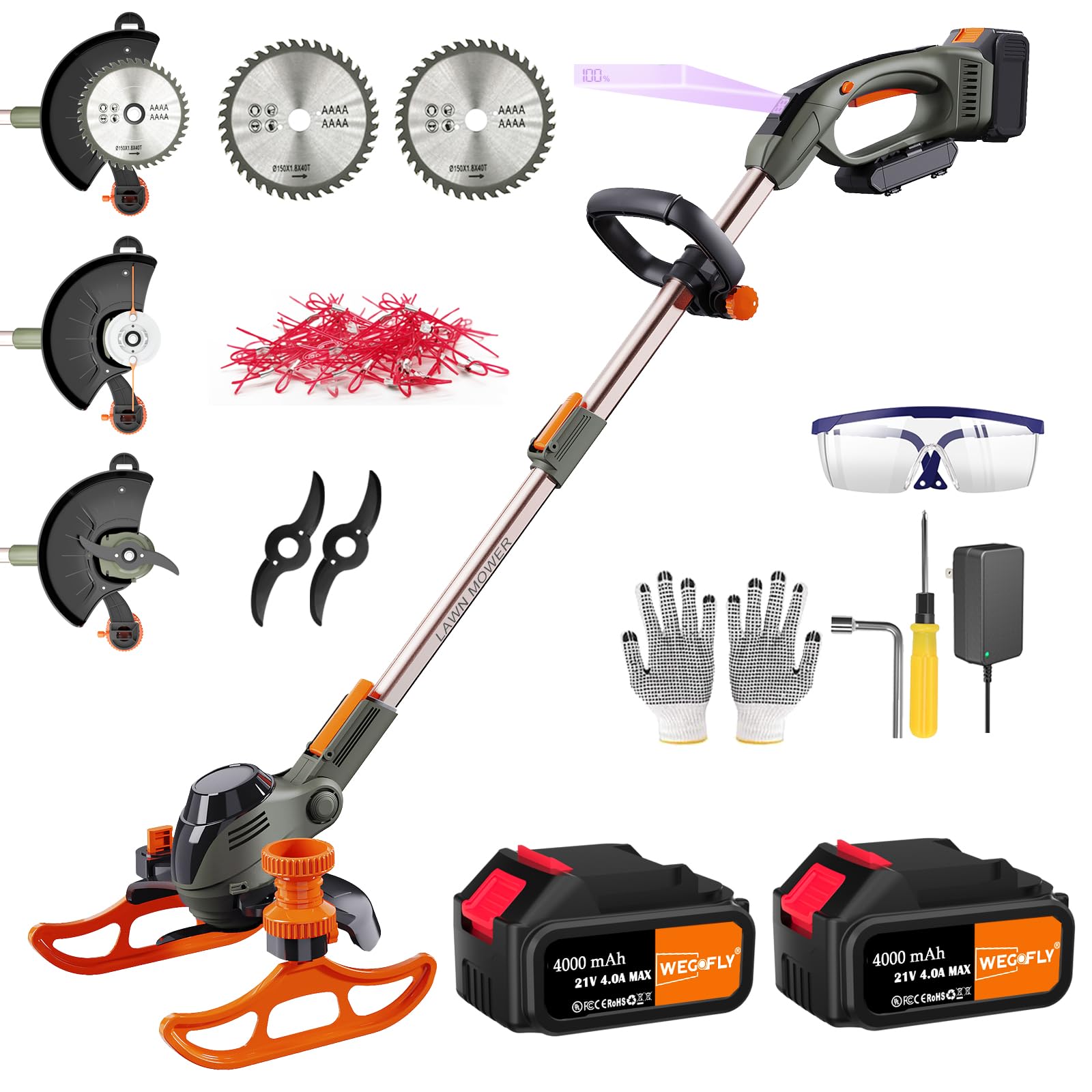 WeGofly Cordless Grass Trimmer with 21V 2x4.0Ah Charger 4 in 1 Electric Strimmer Garden strimmer Brush Cutter and lawn edger with 2 x Saw Blades 2 x Metal Blades 20x Grass Amazon Garden Very well made.