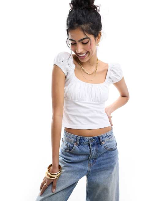 ASOS DESIGN broderie milkmaid top in white Very well made.