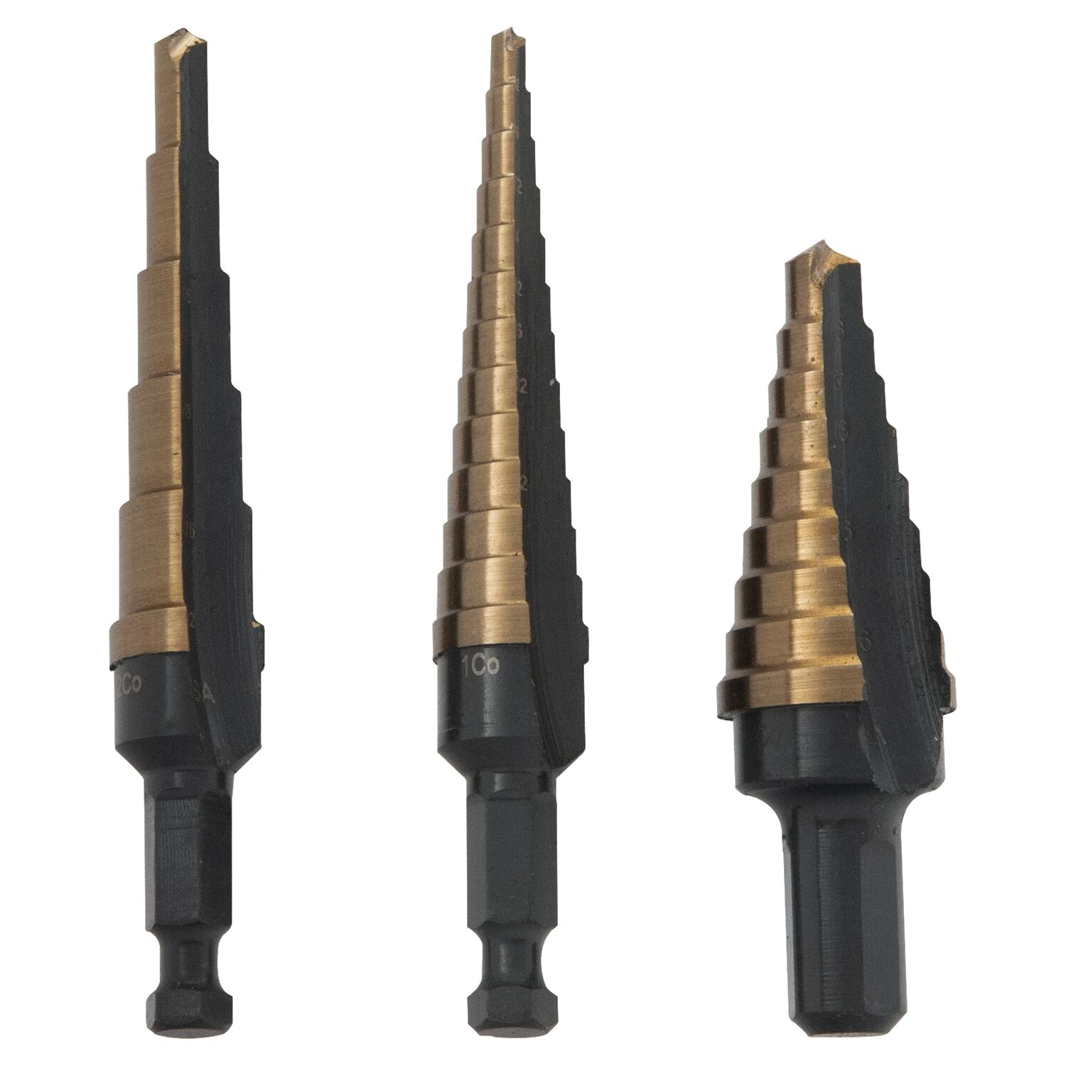 3PC Cobalt Unibit Set Including 1CB 1 8 1 2 2CB 3 16 1 2 3CB 1 4 3 4 Step Bits NEFCO Very well made.