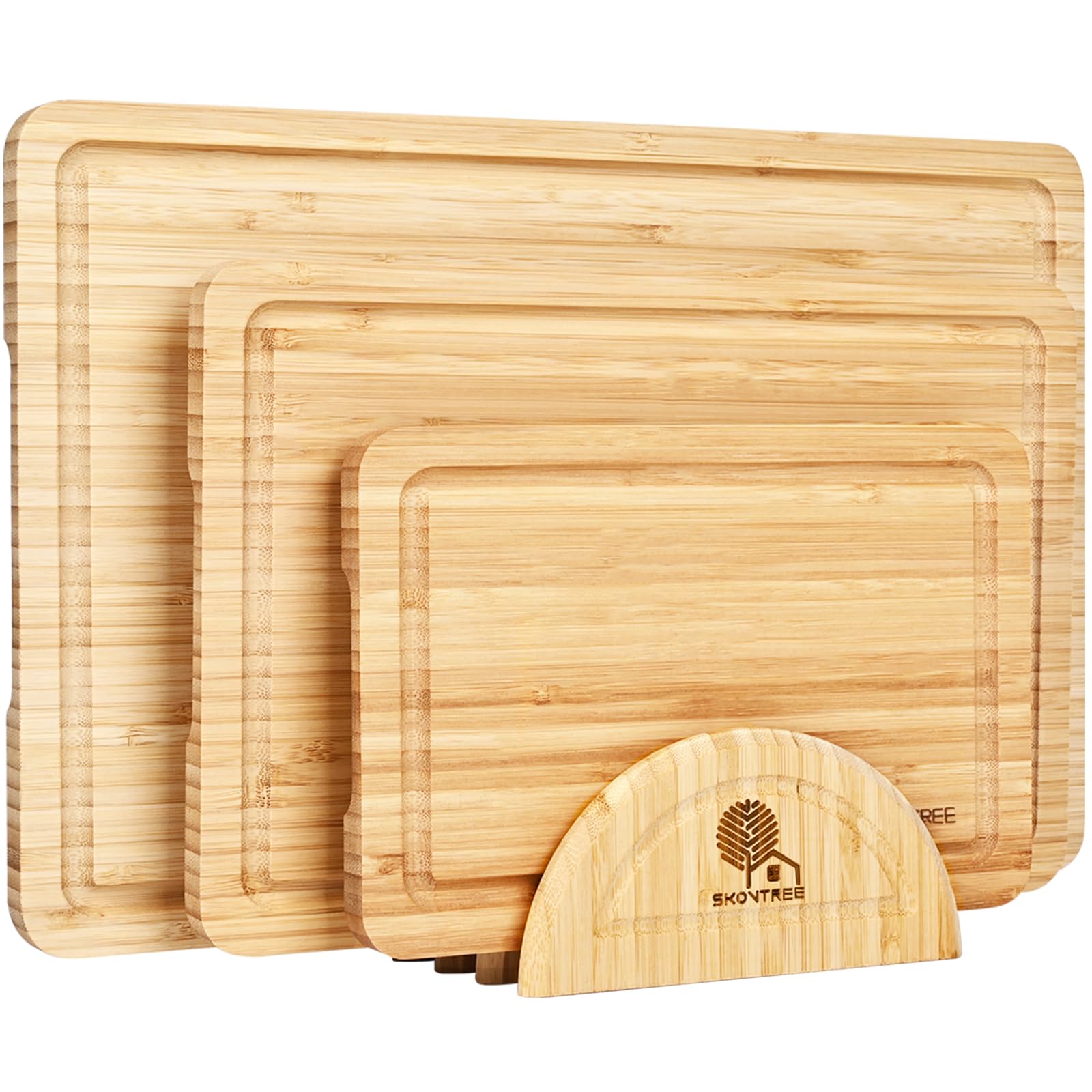 Bamboo Cutting Board 3 Piece Set Wood Chopping Boards Serve Meat Veggies Cheese Very well made.