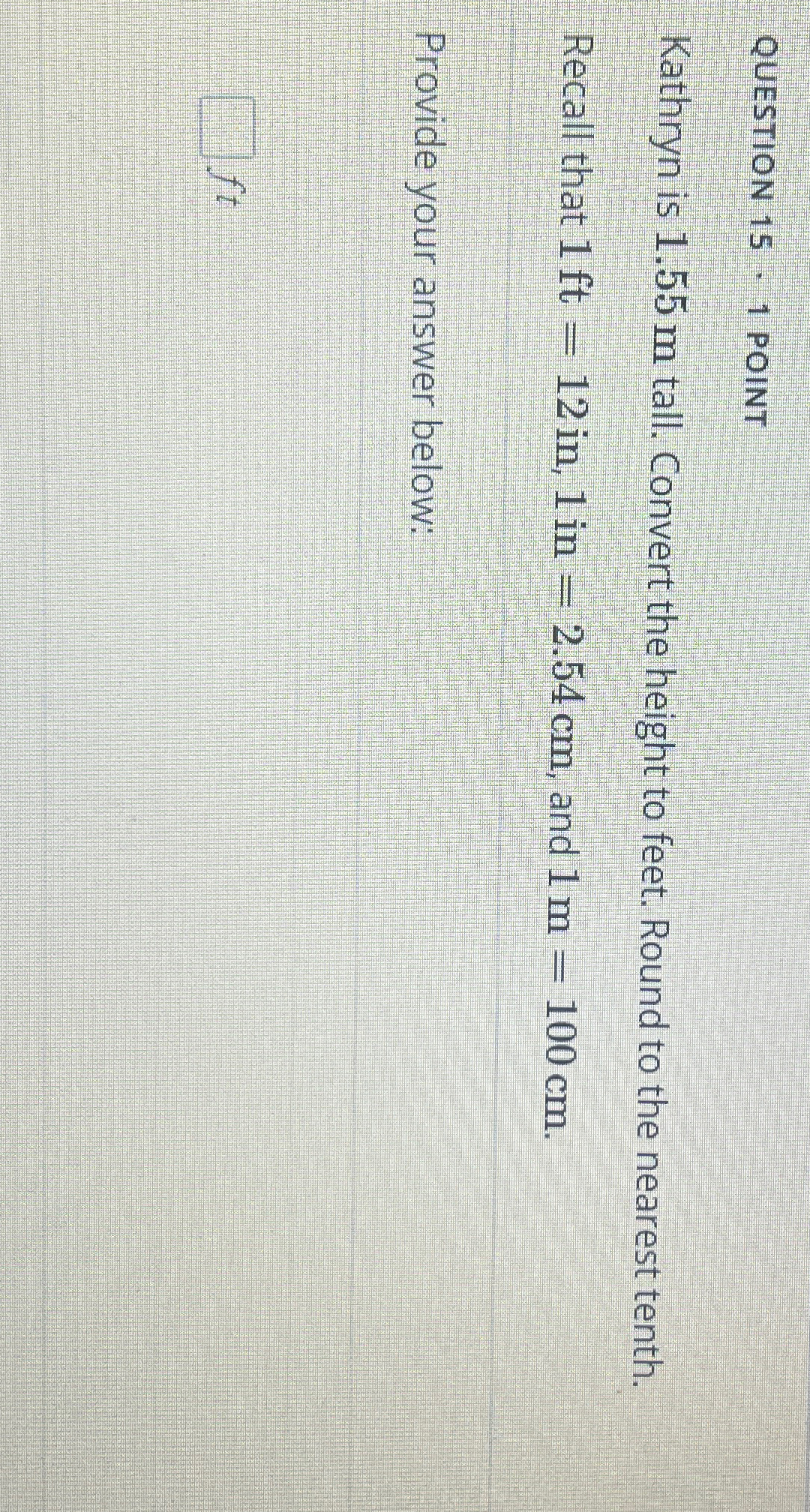 Solved QUESTION 15 1 POINTKathryn is 1.55m tall. Convert Very well made.