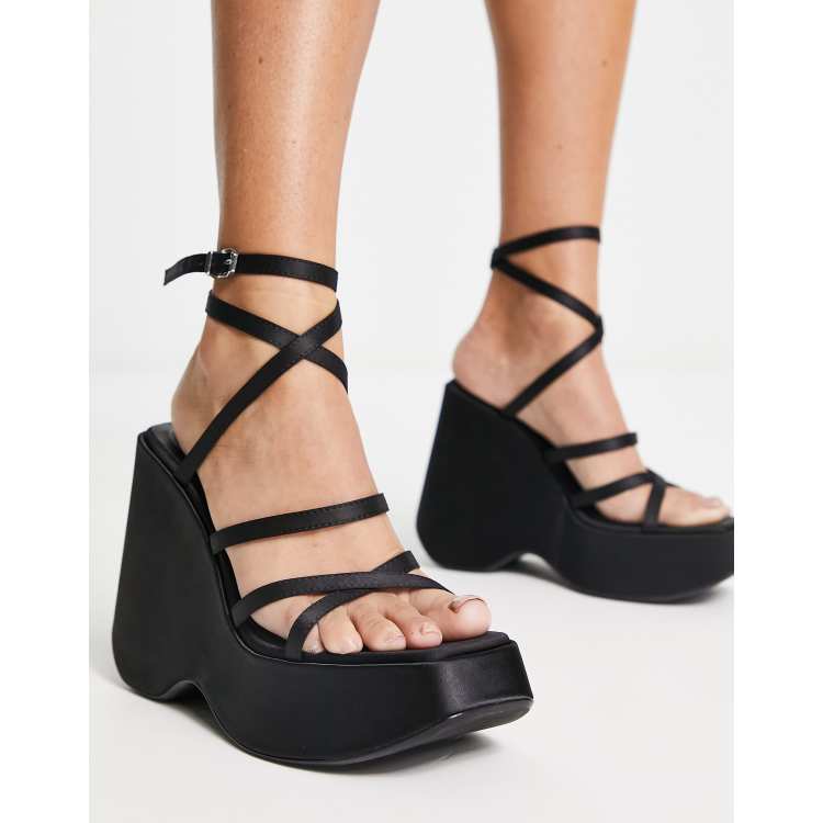 Bershka strap up detail chunky satin sandal in black ASOS Very well made.