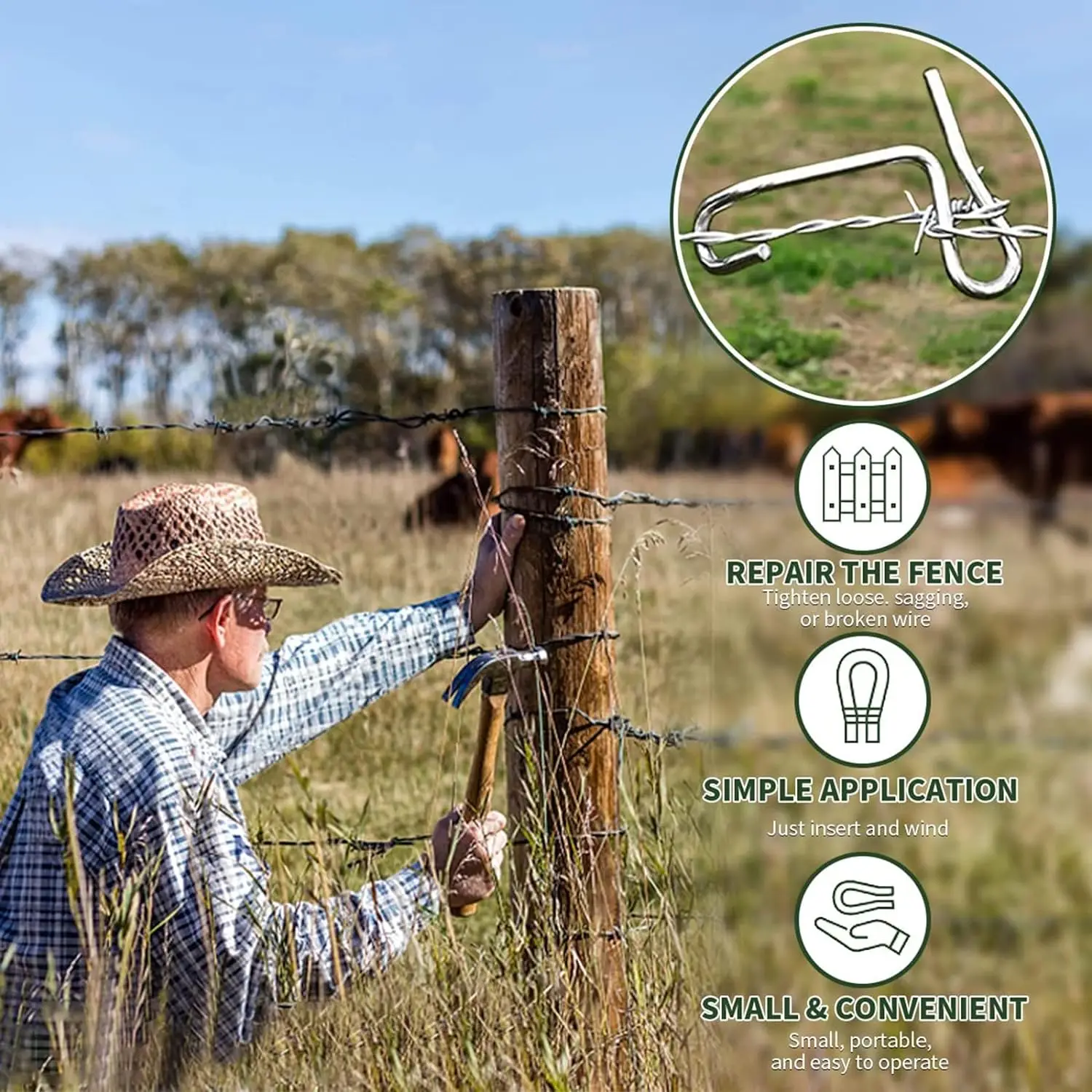Fence Wire Tightener Tool with 1 Tighteners Handle Fence Wire Tensioner Steel Fence Stretcher Tool Barbed Wire Fence Tools Fence Repair Kit for Fast Wire Fence Farmhouse Garden 31 Pieces in Dominican Very well made.