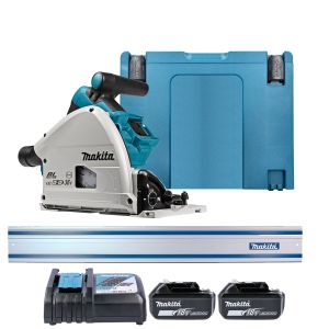 Makita DSP600 Twin 18V Brushless 165mm Plunge Saw with 2 x 5.0Ah Batteries Charger Guide Rail buy Online at UK Planet Tools shop Very well made.