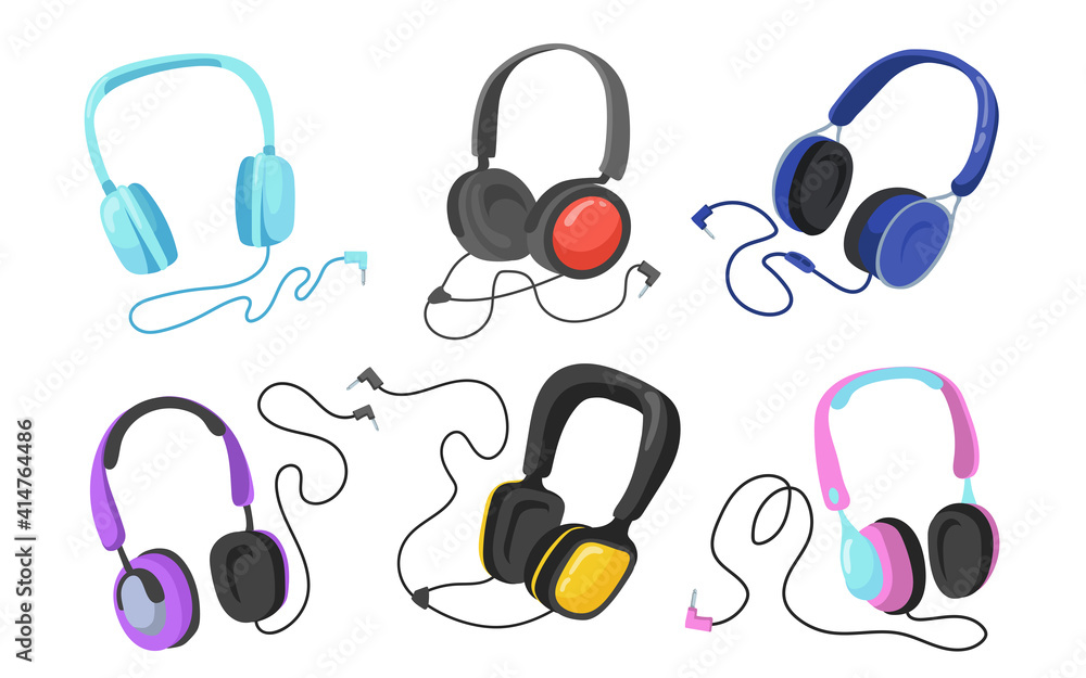 Modern headphones flat illustration set. Cartoon headsets and Very well made.